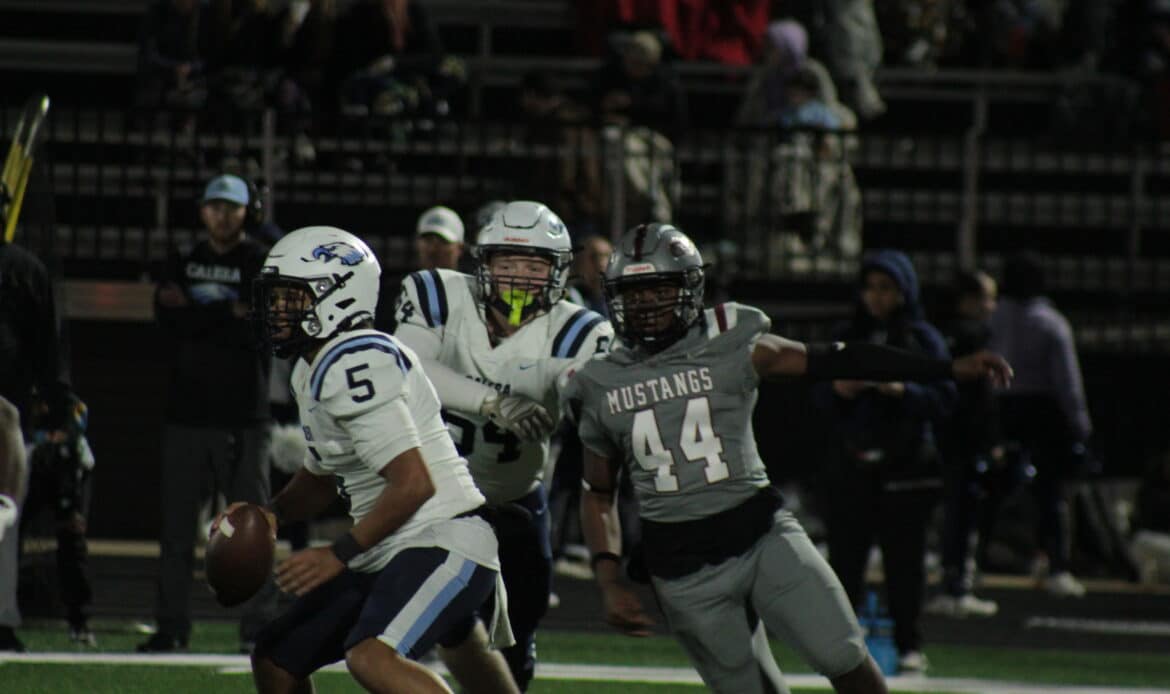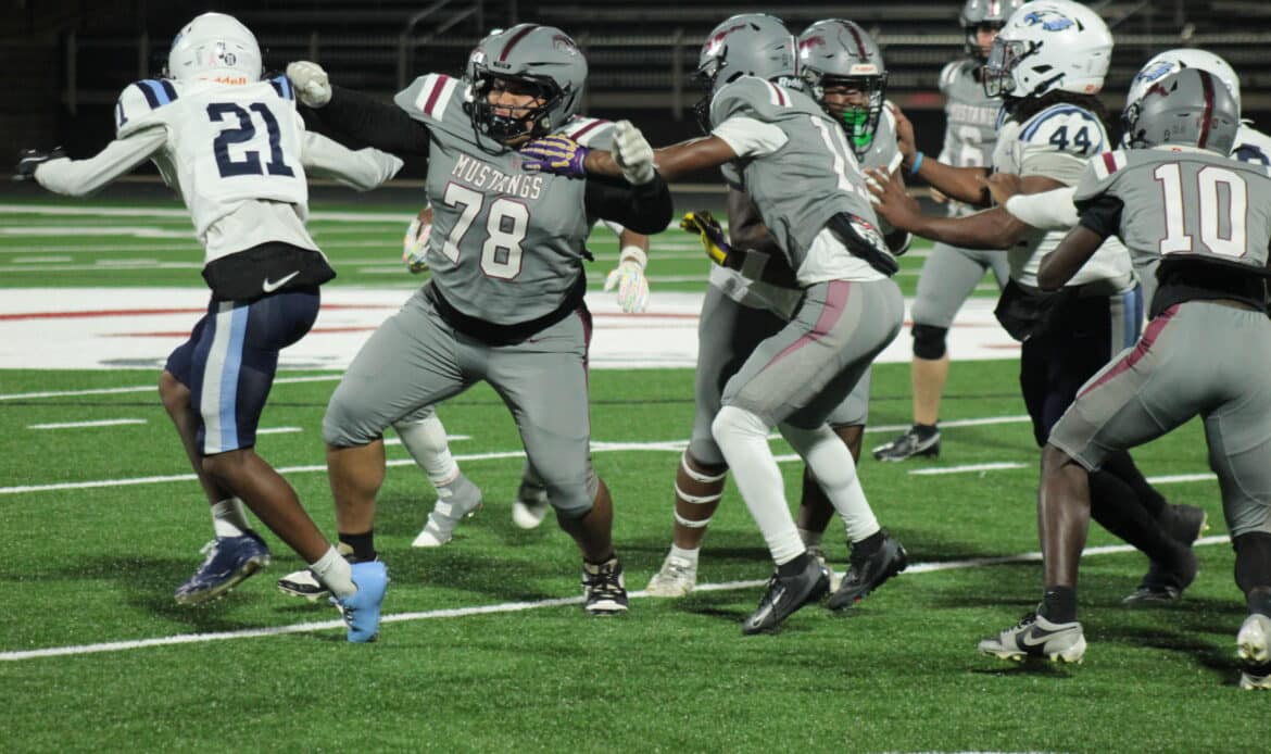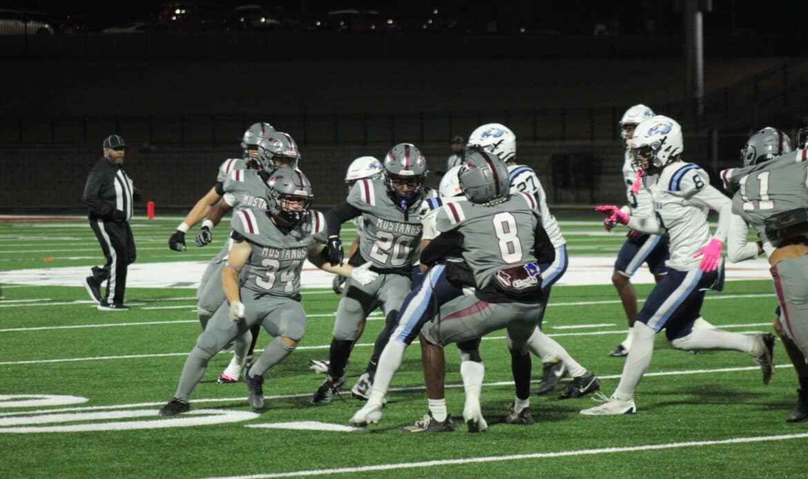 The Mustangs’ Jay Stone returned the opening kickoff for a touchdown. After holding the Eagles to a 3 and out, the Mustangs got the ball with good field position, and in four plays running back Dee Barnes scored to put the Mustangs up 14-0 just four minutes into the game.