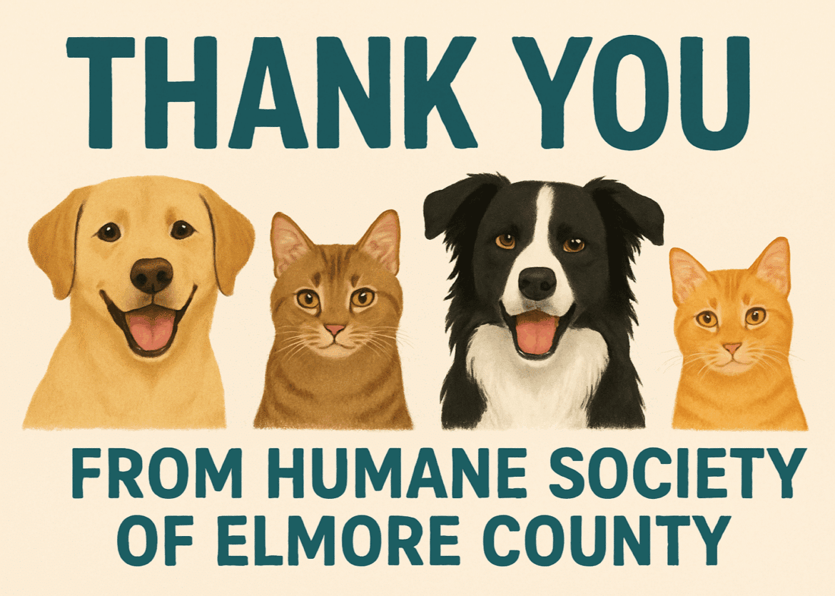 Those of us in shelters also have many people to be thankful for such as our dedicated volunteer board members, our dedicated dog exercisers and all those volunteers who make our Tailโ€™s End Thrift Store such a success. Our foster families are a beloved extension of our staff as they help us care for even more pets in their own homes, providing love and a great start to successful adoptions. We greatly appreciate the partnership we have with animal control officers who work diligently protect the public and help animals in need throughout Elmore County.