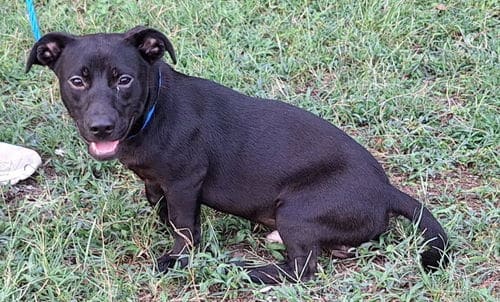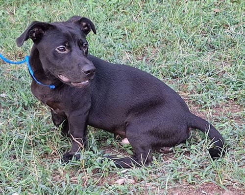 Duce is a fourteen-month-old male Lab/Dachshund looking mix, 27 lbs. He showed up as a stray back in the summer, and even though their dogs wanted to eat him, he wanted to play. He is great with female dogs, lots of fun, loves attention, cute, happy-go-lucky little dude.