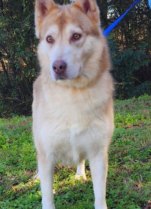Punkin is a six-year-old, female Siberian Husky, about 45 lbs, surrendered to us for being too active. She loves squeaky toys and also loves destroying tennis balls. We were told she is good with cats once she knows them but since she has a high prey drive towards small animals (squirrels and the like), let’s just say no to cats for their sake. She is great with other dogs and good with older children (bit too much for the little ones). Punkin is a super sweet & beautiful lady indeed.