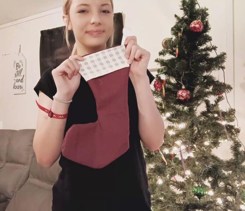 Most of the fabric is donated by people in the community who can no longer sew but want to see the fabric put to good use. This year, some students brought in their own special fabrics to use. For example, some did memorial stockings from family members who have passed away. They also made stockings with baby clothing and blankets.