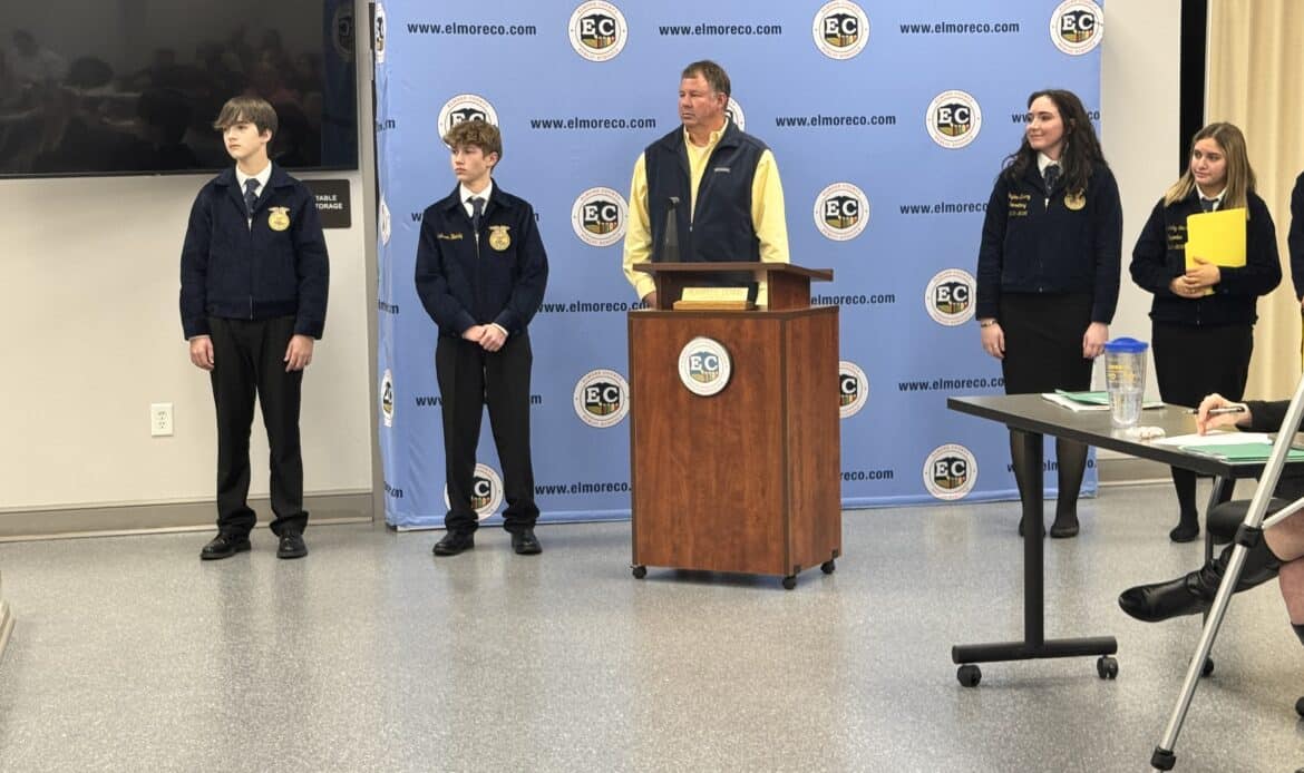 Wetumpka High School agriscience instructor, Clay Mims introduced some of the schoolโs FFA chapter officers and updates during the Elmore County Board of Educationโs regular meeting on Jan. 20, 2026.