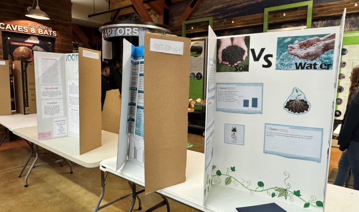 Elmore County Public School students in elementary, middle, and high school participated in the district-wide science fair competition on Jan. 29, 2026, at the Alabama Nature Center NaturePlex in Millbrook.