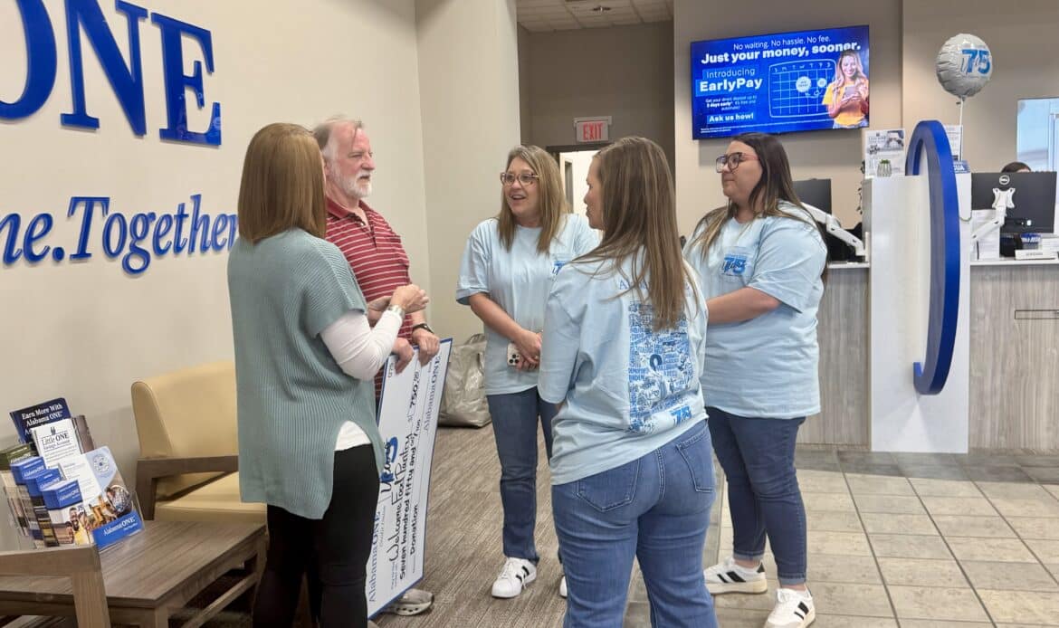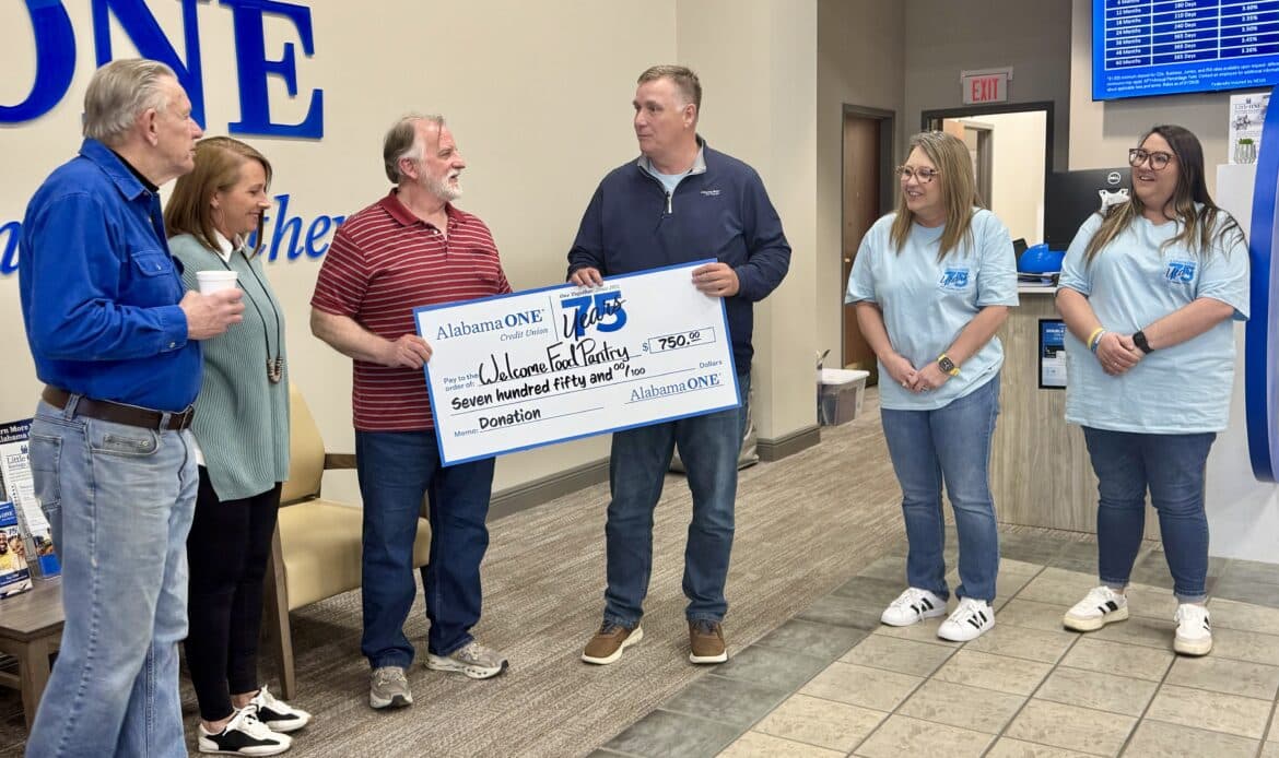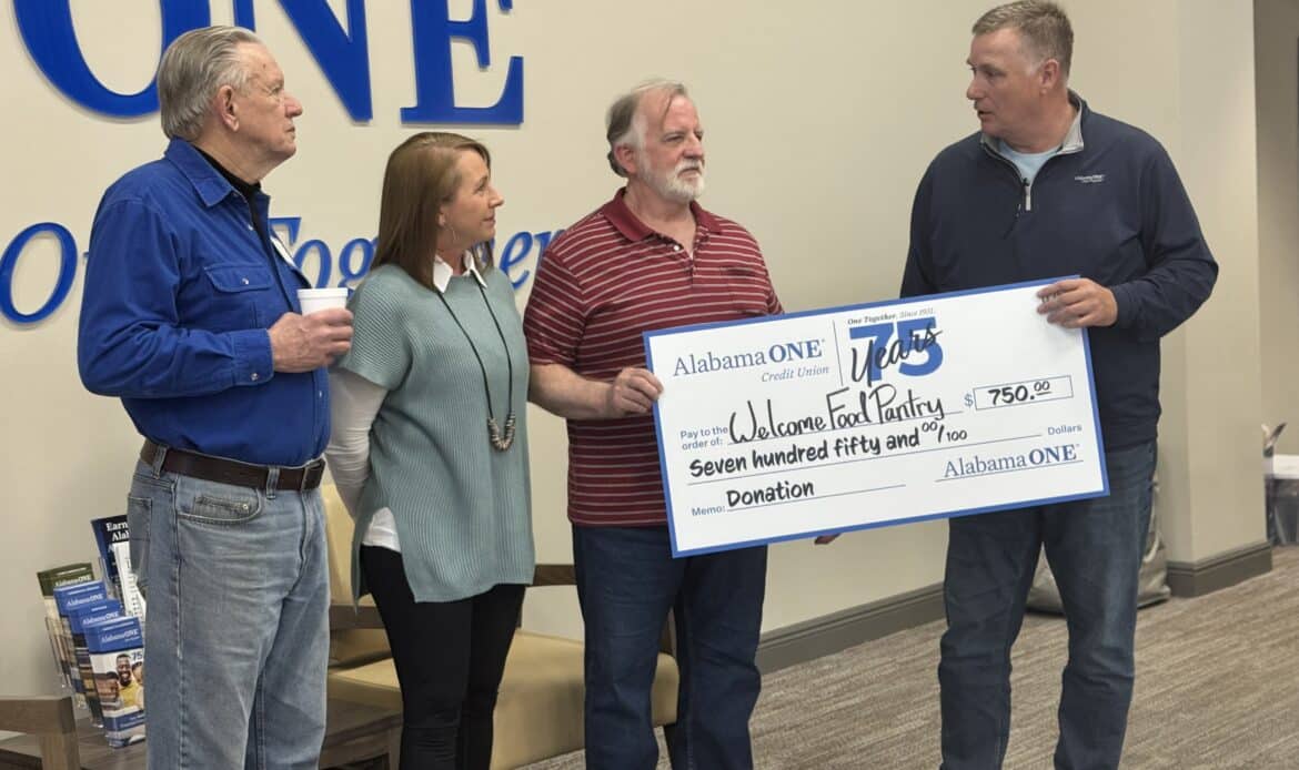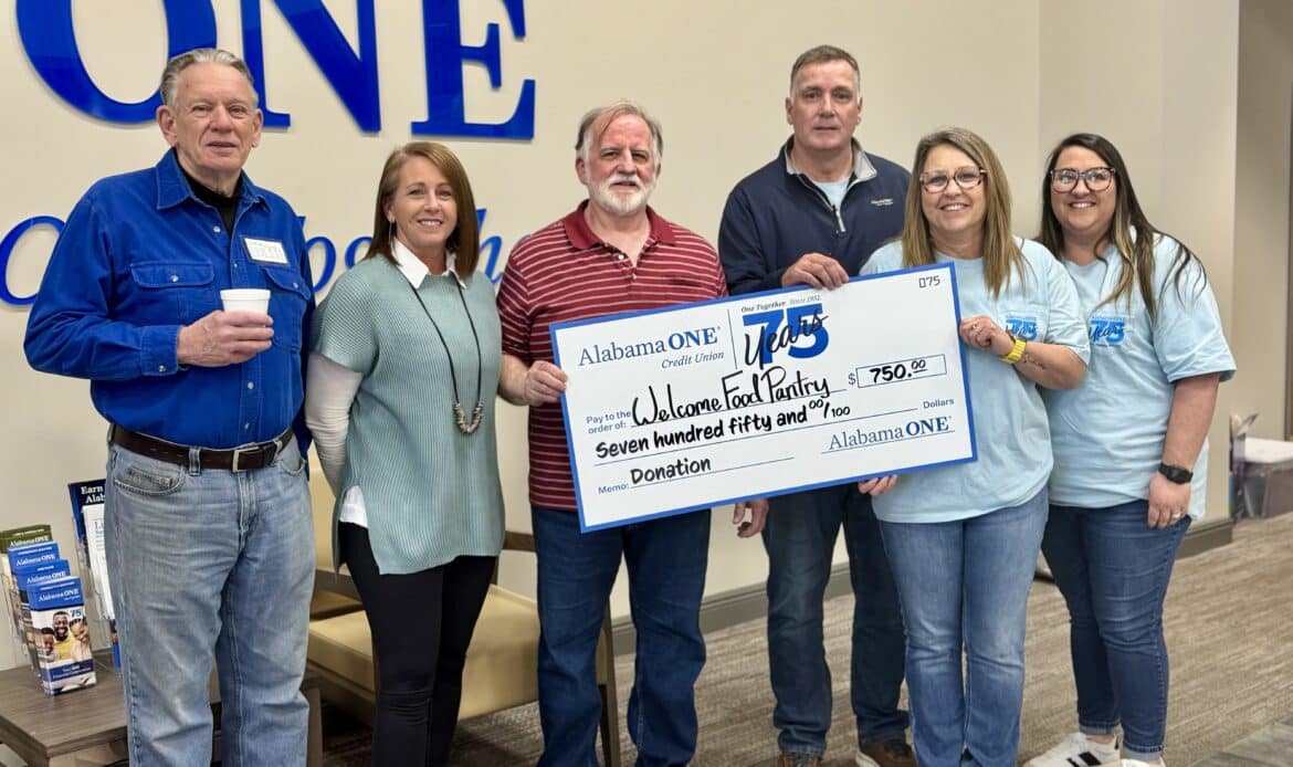 Alabama One Credit Union celebrates 75 years this year. In doing so, the company decided that they wanted to give back with a nod to 75 years by giving back to the local community and donating back to a local nonprofit. They confidently chose to give back to Millbrookโs local food pantry, The Welcome Food Pantry. Alabama One chose to stick with the theme of celebrating 75 years of business by donating $750 dollars to the local Welcome Food Pantry in Millbrook and a promise to be a part of serving and volunteering this year.