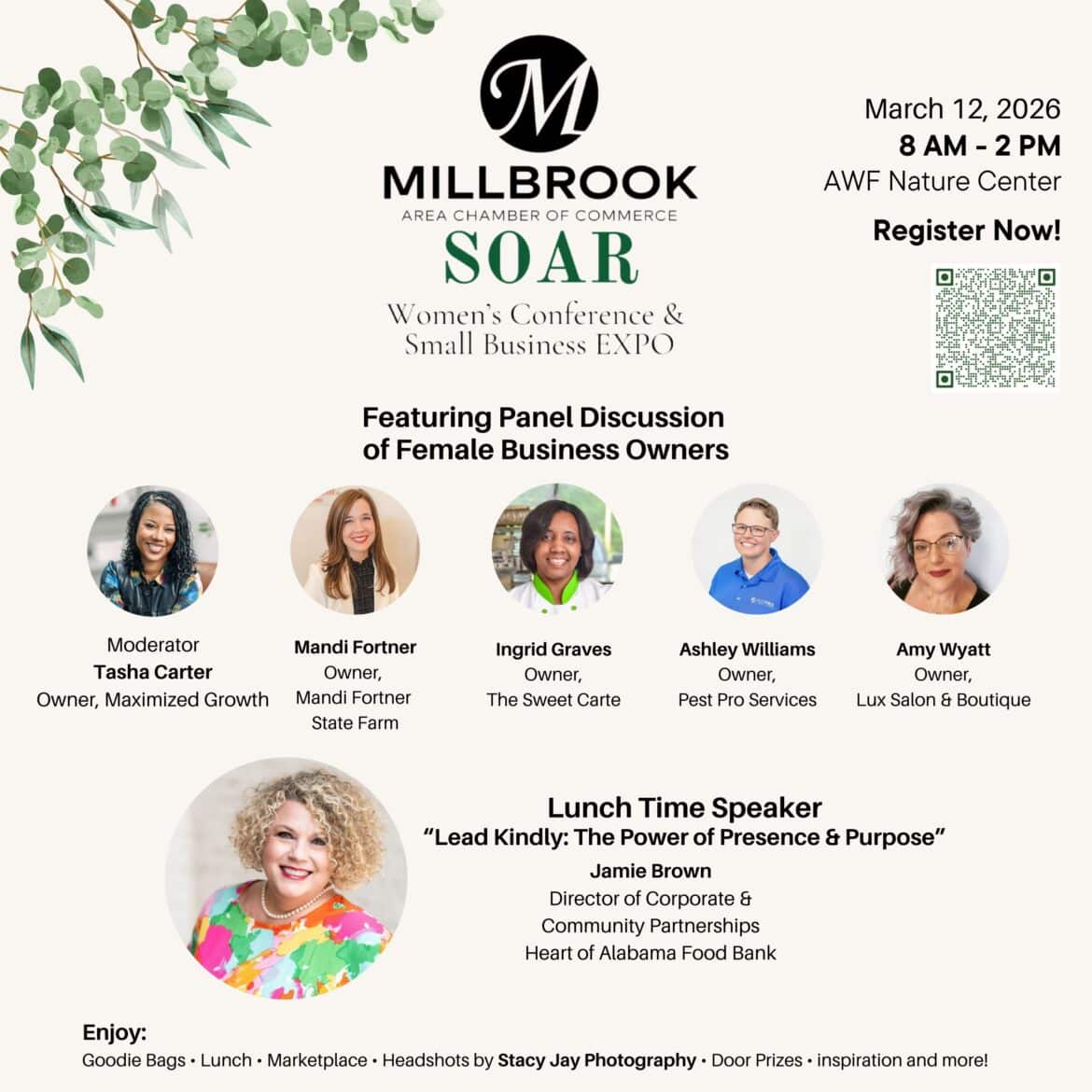 Millbrook, AL — The Millbrook Area Chamber of Commerce is proud to present the 2026 SOAR Women’s Conference & Small Business EXPO on Thursday, March 12, 2026, from 8:00 AM to 2:00 PM at the AWF Nature Center (formerly Alabama Nature Center). This premier event is designed to empower, connect, and celebrate women in business throughout the River Region.