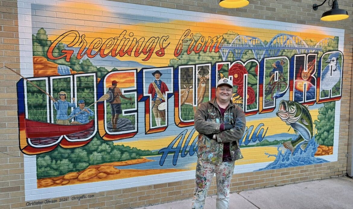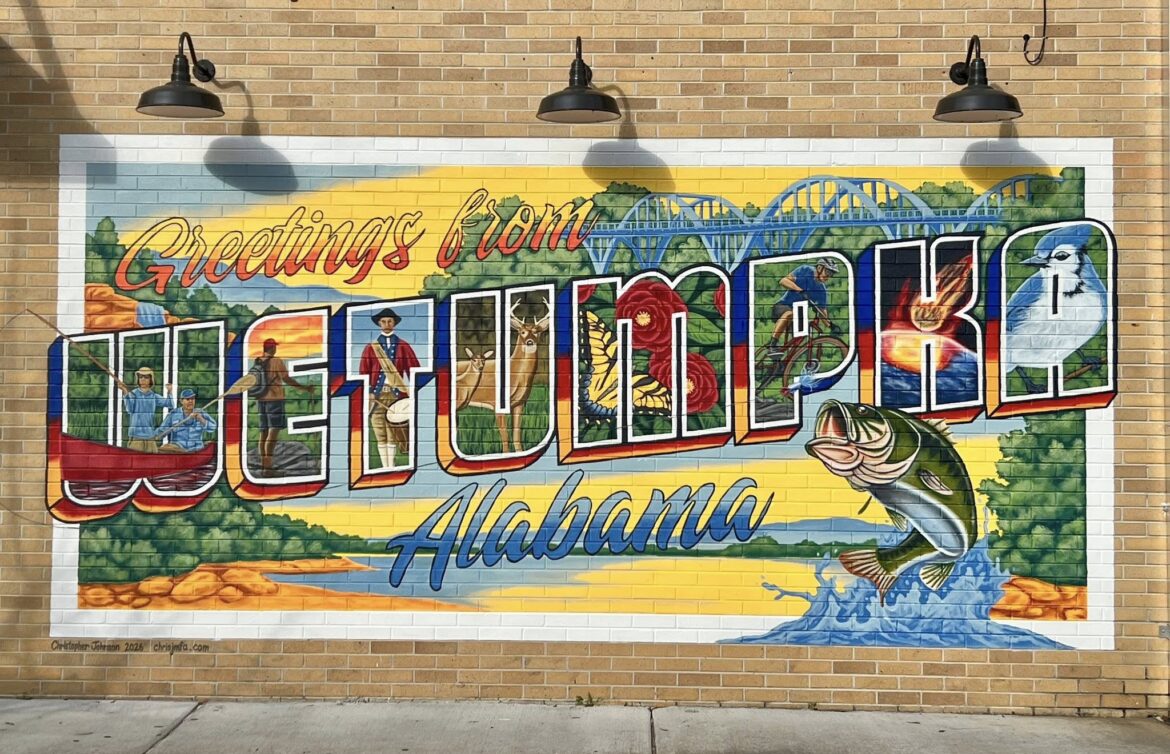 Wetumpka, AL — Downtown Wetumpka just got brighter! A bold, postcard-themed mural now welcomes residents and visitors to the heart of the city, celebrating the natural beauty, historic charm, and vibrant community that make Wetumpka a place people love to explore.