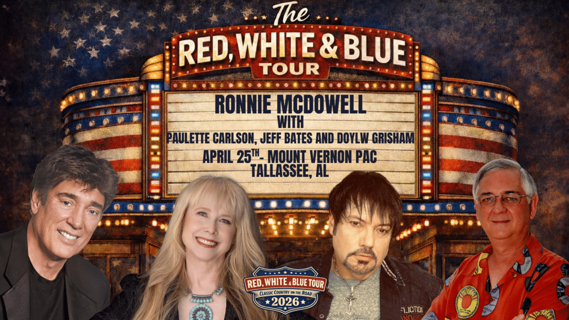 One of country music’s top legendary performers, Ronnie McDowell, has just announced that the brand-new Red, White, and Blue Tour is headed to the famous Mount Vernon Performing Arts Center in Tallassee, AL, on April 25.
