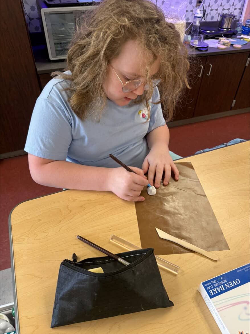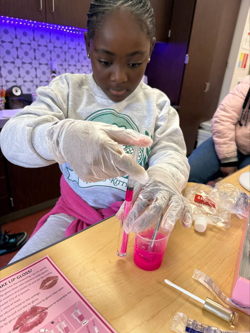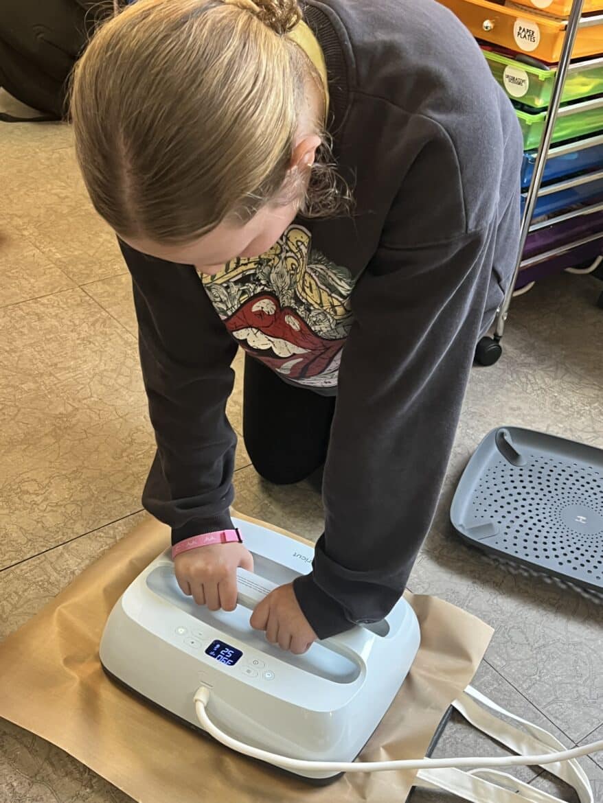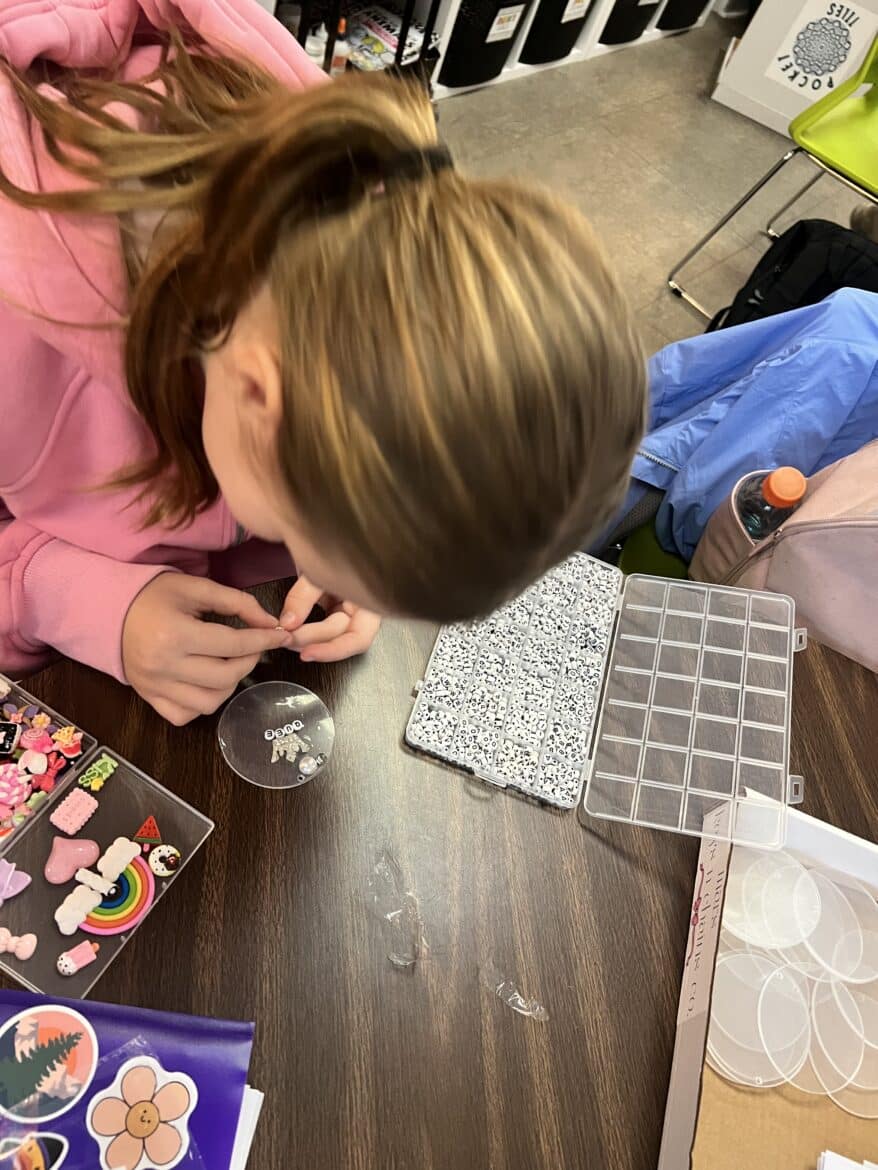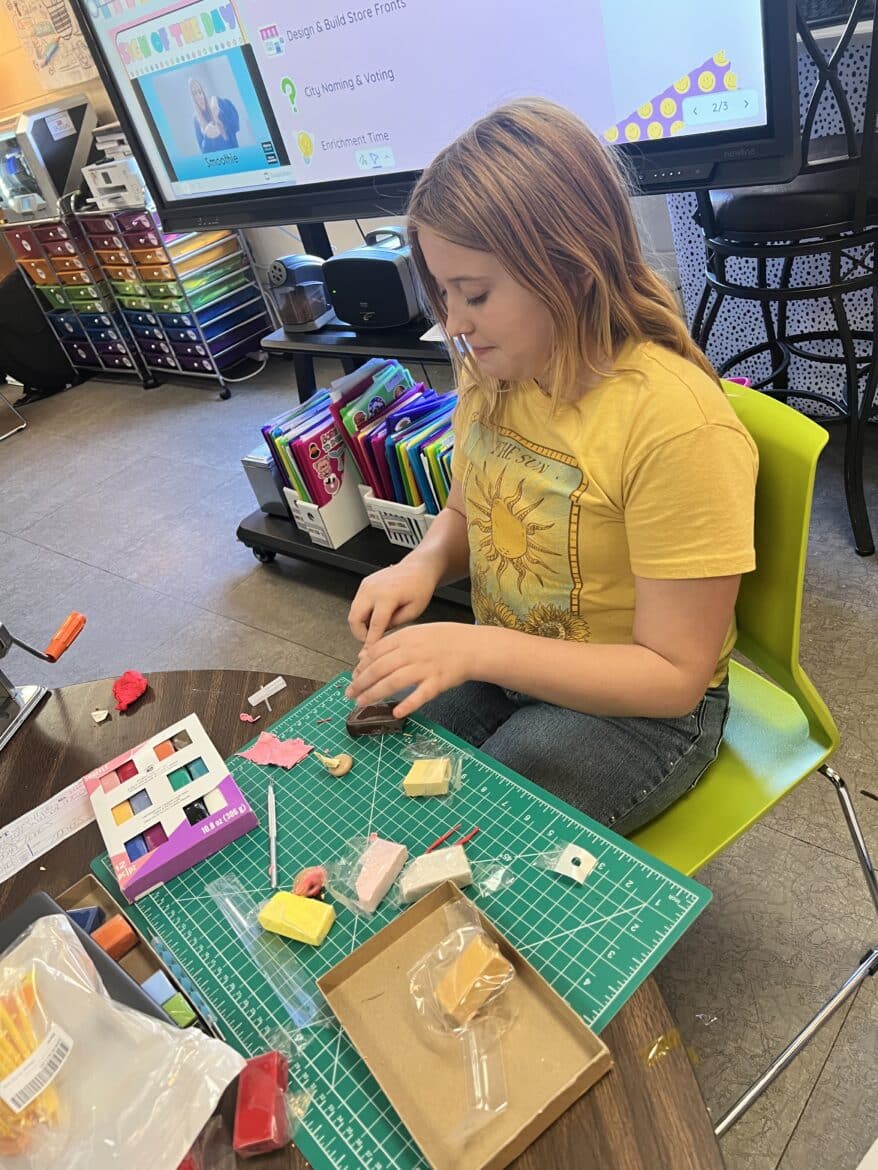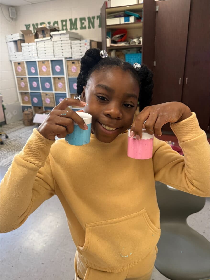 “To support this work, our classroom was transformed into a flexible, workshop-style space,” said Sarah Porter, gifted specialist at Millbrook Middle School. “Students could work in ways that fit their projects. Some needed outdoor areas for ventilation while making items like resin crafts, hydro-dipped products, or all-natural bug spray. Others worked indoors using heat presses, sublimation tools, or digital design programs to create candles, bath products, jewelry, tote bags, aprons, mouse pads, and 3D-designed games. At any given moment, the room reflected the diversity of their businesses and the authenticity of the experience.”